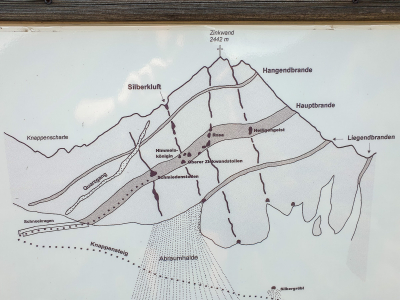 Im Vetternkar, ca. dort, wo der Weg nach Nord dreht, diesen verlassen und Richtung SO, am besten rechts vorbei am östlichen Knappensee, auf Steigspuren direkt auf die Vetternscharte zusteuern. Von der Vetternscharte geht es dann nochmal kur abwärts, man kann den Stolleneingang in der Zinkwand aber schon aus der Ferne erkennen.