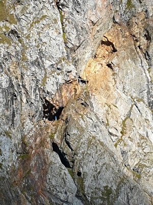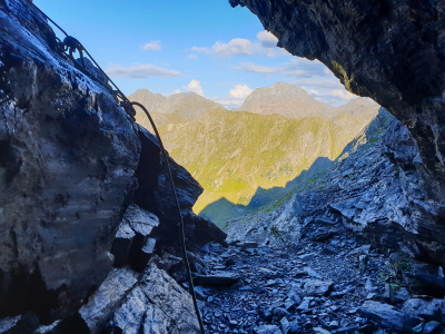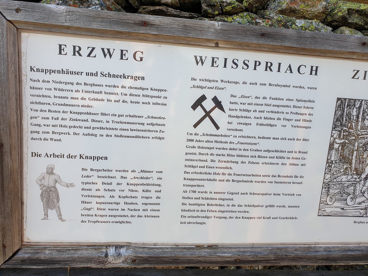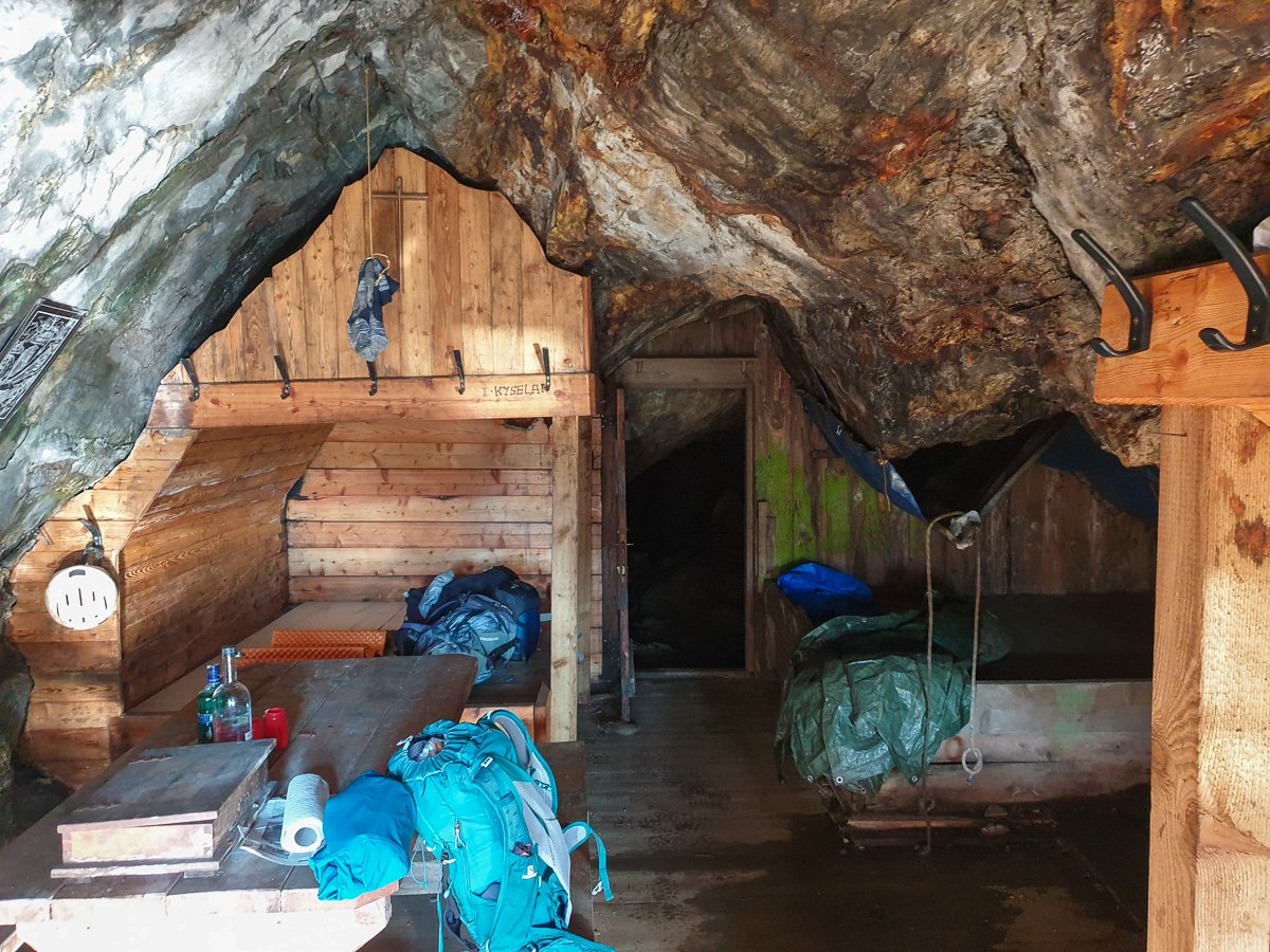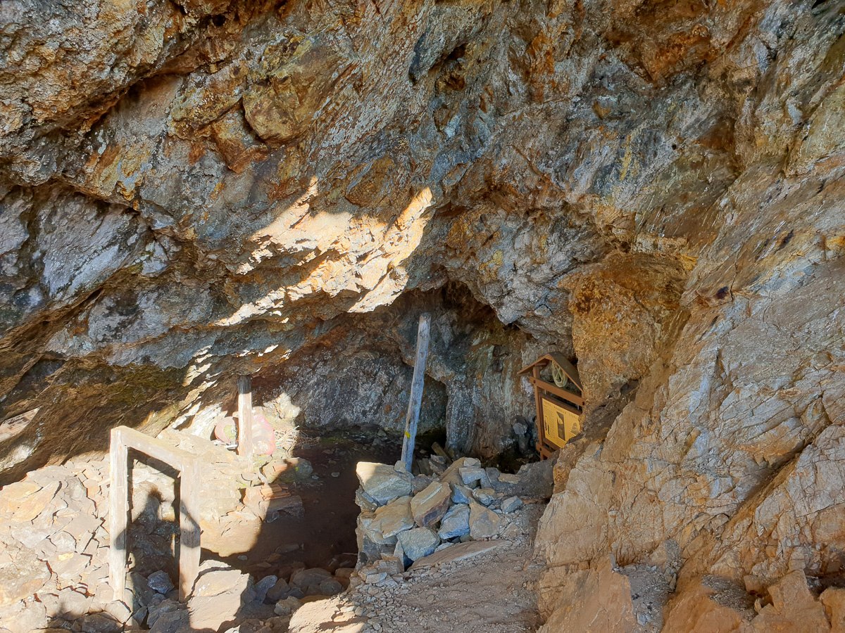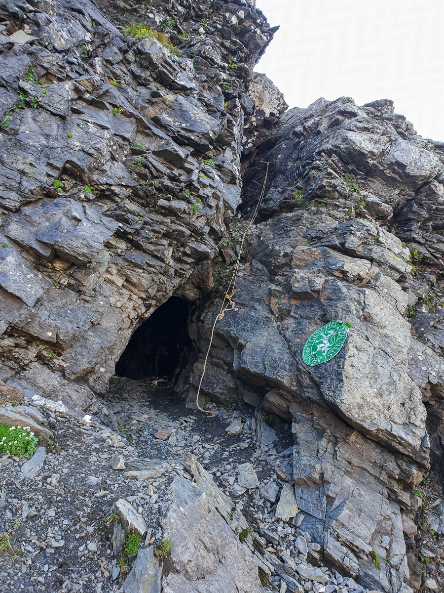 Der Zugang zum Eingang des Stollens ist mit einem Drahtseil gesichert, das letzte Stück geht es noch über eine Leiter. Im Stollen unbedingt einen Abstecher zur Knappenstube machen, hier könnt man auch gut geschützt, mit einem wunderschönen Ausblick übernachten.
