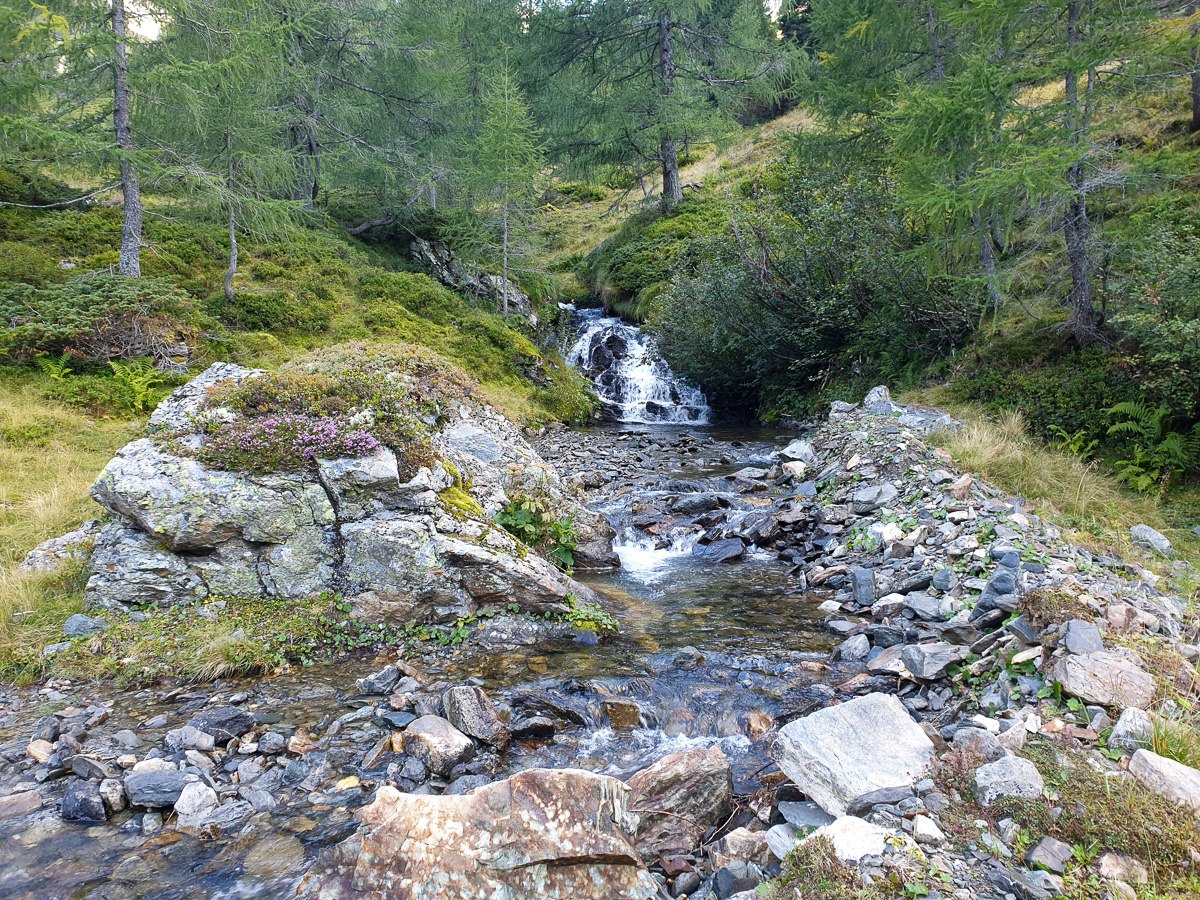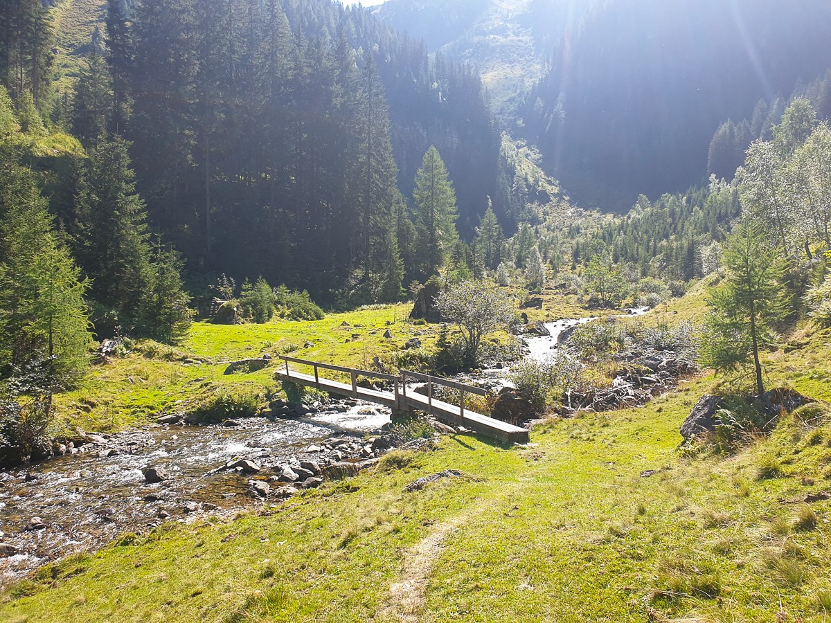 Direkt von der Bushaltestelle geht es los über die Brücke in Richtung Ignaz-Mattis-Hütte. Das sind bis zum Giglachsee schon mal fast 1000 Höehenmeter. Angeschrieben ist das mit 3:30 Stunden. Wir waren in gut 2 Stunden am See. Von dort geht es links am See vorbei weiter Richtung Keinprechthütte.